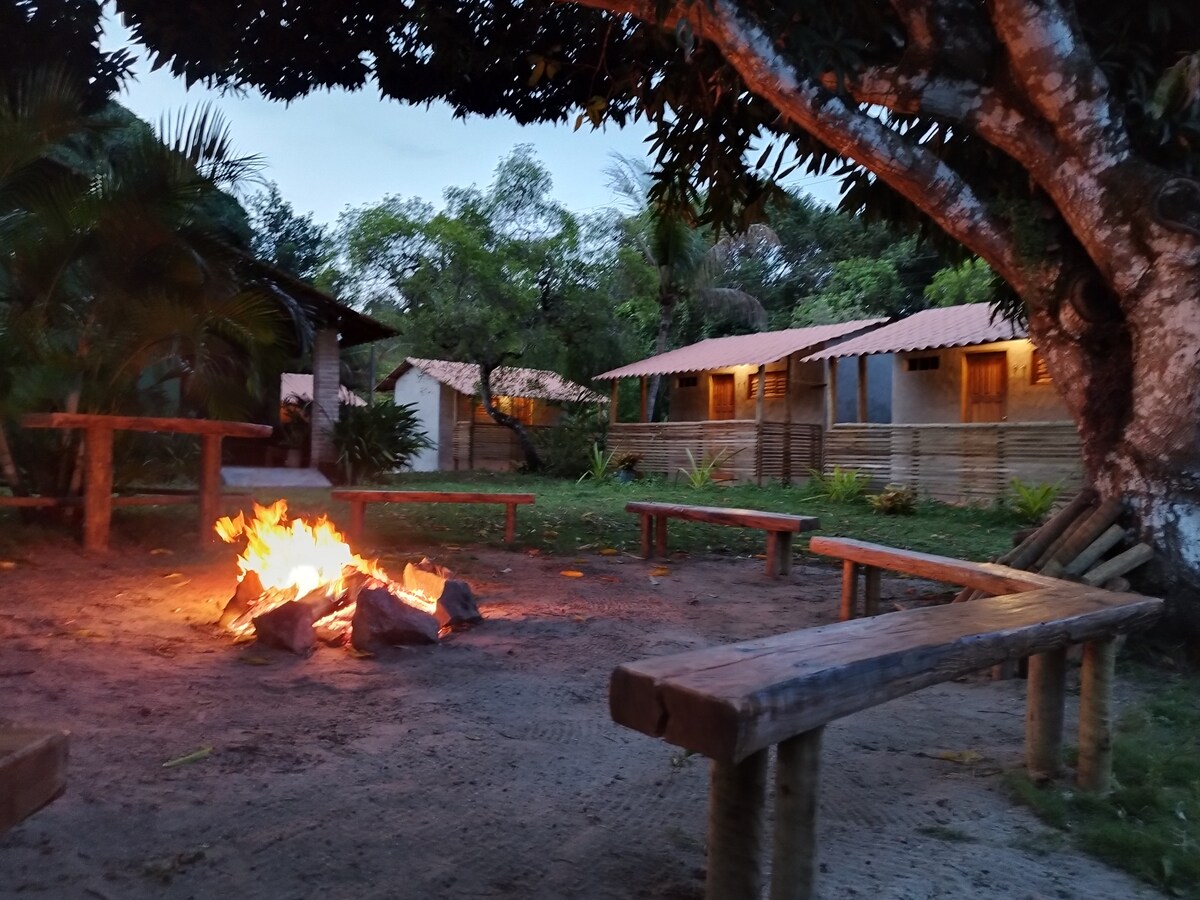 Il-Bacanas (Barracas imħallta ma' Cabanas) jew il-glamping tagħna jinsabu 800 metru 'l bogħod mill-Bajja ta' Corumbau, u f' żona ta' 6000m2 b' ħafna veġetazzjoni, frott u dell nattiv. Aħna nservu ikliet tipiċi. Dawn inbnew minna stess, bl-użu tat-tafal, tal-bambù u tal-fliexken, flimkien mas-saqaf magħmul minn kaxxi tal-ħalib riċiklati, li jiggarantixxu l-kumdità termali u ma jsaħħnux. Għandhom Sodda King Size (jew 2 sodod singoli), u l-kamra tal-banju maqsuma mal-oħrajn. Għandhom xibka tan-nemus, wifi, fann