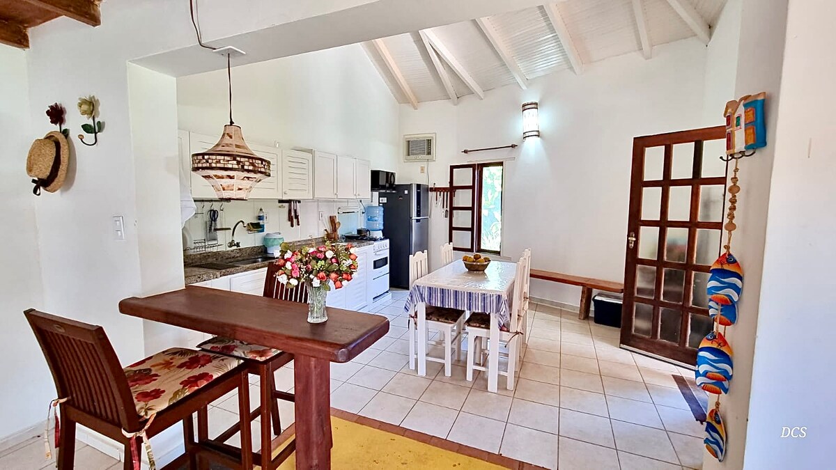 Cottage Encanto Corumbau: Natura. Privatezza. Bajja qrib tiegħek. Il-vaganza perfetta tiegħek f'Corumbau, fejn tista' tnaqqas ir-ritmu, tisma' r-riħ fis-siġar, il-kant tal-għasafar u timxi lejn il-bajja tal-ġenna Santa Maria f'5 minuti biss. Chalé komdu u li jilqgħek, imfassal biex tħossok komdu u mdawwar bin-natura. Aħna 1 km 'il bogħod miċ-ċentru, bis-swieq u r-ristoranti, u 5 km 'il bogħod minn Ponta do Corumbau, wieħed mill-postijiet l-aktar magħrufa tar-reġjun.