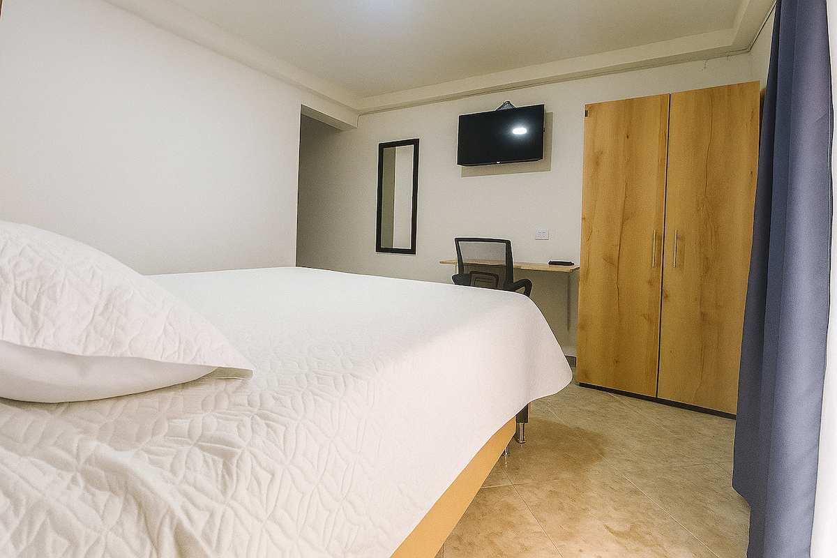 Suite mgħammra kompletament ta '28 m2, bl-arja kkundizzjonata u kċina żgħira. Jinsabu f 'waħda mill-aqwa żoni ta' Medellin, f' viċinat kwiet ħafna qrib il-postijiet kollha ta' interess. Is-Suite fiha veduti spettakolari tal-belt u l-muntanji. Tista 'tagħmel użu miż-żona ta' coworking, gym u kafè spettakolari li joffri tipi differenti ta' xorb skont l-aqwa kafè Kolombjan, tista' tgawdi x-xarba tiegħek fuq it-terrazzin li jinsab fit-tieni sular tal-bini.