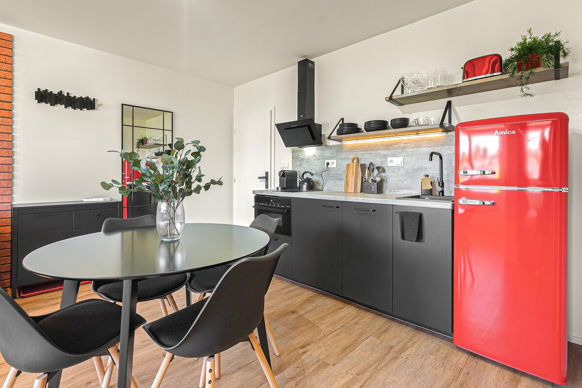 Skopri l-loft romantiku tagħna ta' 80 m² fi Praga, spazju b'disinn uniku b'saqaf għoli 7 metri u ġnien privat. Ideali għal koppja, dan il-post mimli dawl joffri terrazzin tal-injam li jagħti fuq il-bambù. Gawdi sodda king-size, kċina mgħammra b'kollox u atmosfera artistika u awtentika. Post għall-kwiet 10 minuti 'l bogħod mill-istazzjonijiet. Dan il-post għandu storja: taħt ir-reġim komunista, il-ġnien kien il-bitħa ta' skola.