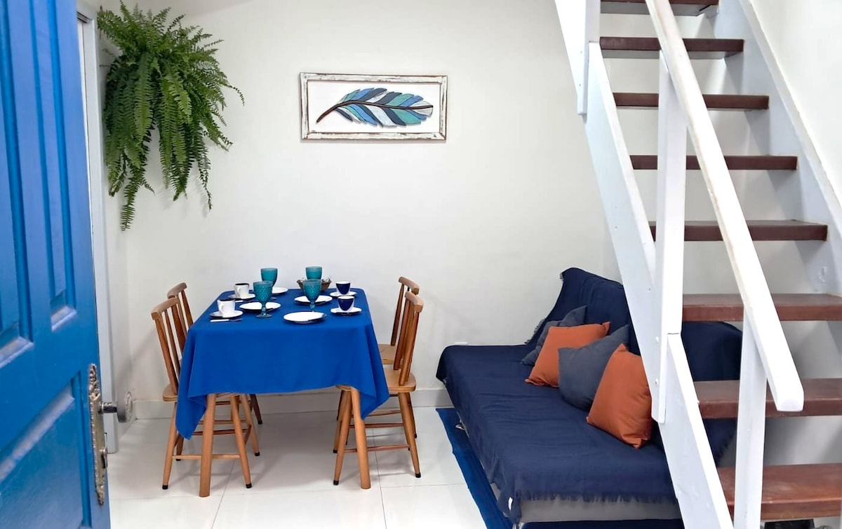 Apartamento no Centro da cidade na Rua das Pedras, a poucos metros da praia do Canto. . Compõe quarto, sala, cozinha americana e banheiro. . Comporta até 5 pessoas. . Completo para cozinhar e aproveitar o melhor de Búzios. . Temos roupas de cama e toalhas e serviço de limpeza incluso na diária. . Não temos garagem/estacionamento.