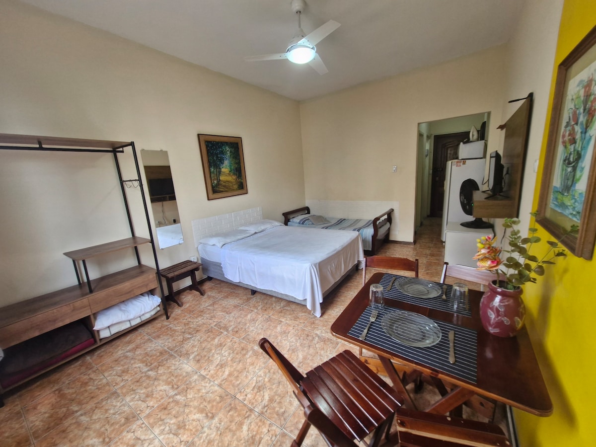 Lindo studio, reformado e completo. Ideal para casais, viagens individuais, viajantes de negócios. Capacidade para até 3 pessoas. Aconchegante e silencioso, arejado, com internet, ar-condicionado e todos os utensílios necessários para a melhor estadia. Localização ótima no posto 5, próximo ao comércio (supermercados, padaria, lojas diversas) e apenas 02 minutos da praia e 05 minutos do metrô. Durante o mês de novembro a portaria passará por reforma, acesso pela entrada de banhistas na lateral .