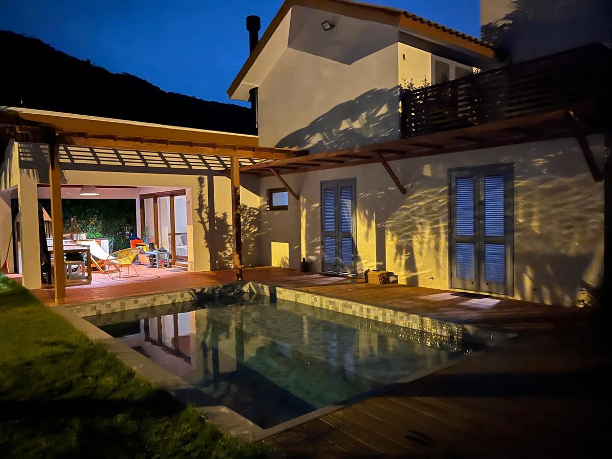 Relaxe em um local tranquilo, em contato abundante com a natureza, cachoeira, piscina natural com pergolado, deck com vista para a montanha e mar, privado e reservado. O Local é ensolarado com lindo jardim, árvores frutíferas, árvores nativas e outros espaços comtemplativos. Possibilita lindas fotos, observação de pássaros e da biodiversidade da Floresta Atlântica. A casa se encontra na subida do morro com trilha pelo rio. Pets são bem vindos. Crianças brincam no jardim.