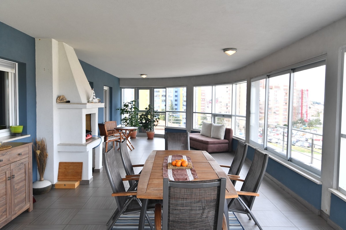 Appartament b 'penthouse uniku li jgawdi terrazzin b' użu privat b' veduti panoramiċi fuq il-port tal-belt ta' Pula, ħdejn il-Forum tal-Pjazza ewlenija u l-kafetteriji, il-mużika live, il-bars u r-ristoranti. Fuq nett ta 'dik li qabel kienet il-lukanda Awstro-Hungarja prestiġjuża Miramar (l-ebda lift, biss taraġ tal-ġebel oriġinali mill-isbaħ), l-appartament jinsab ħdejn it-tempju antik ta' Augustus u monumenti Rumani oħra. Jiġi b 'parkeġġ privat bla ħlas fil-qrib. L-amfiteatru famuż ta 'Pula u s-suq aħdar jinsabu ftit' il bogħod.