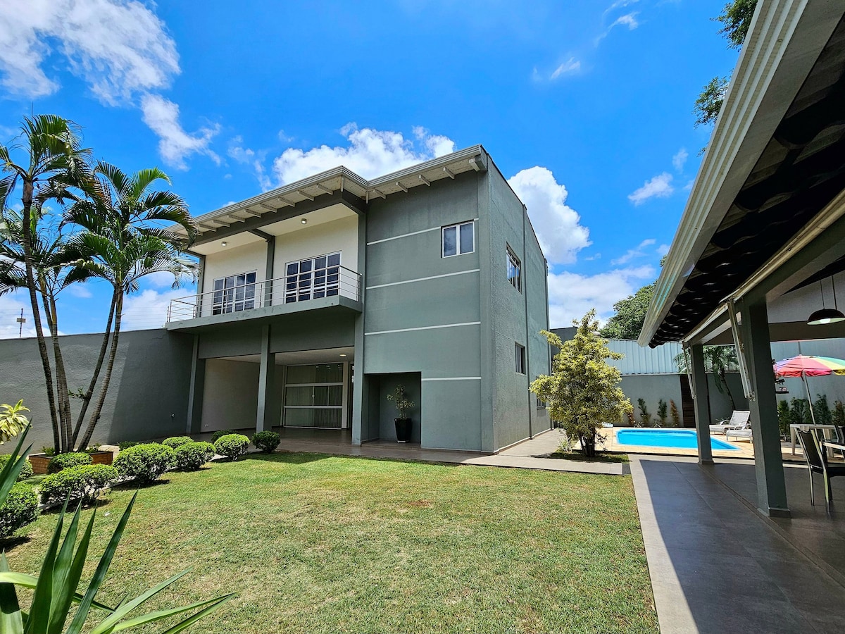 Modern 120 m² apartments for up to 10 guests, in downtown Foz do Iguaçu. Comfort, technology, and 24/7 reception. Fully equipped kitchen, private barbecue, air conditioning in all rooms, and free parking for 2 vehicles (with reservation). The condo offers complete leisure: pool, heated jacuzzi, sauna, gym, kids’ room, game room, coworking space, beauty salon, and 24/7 market.