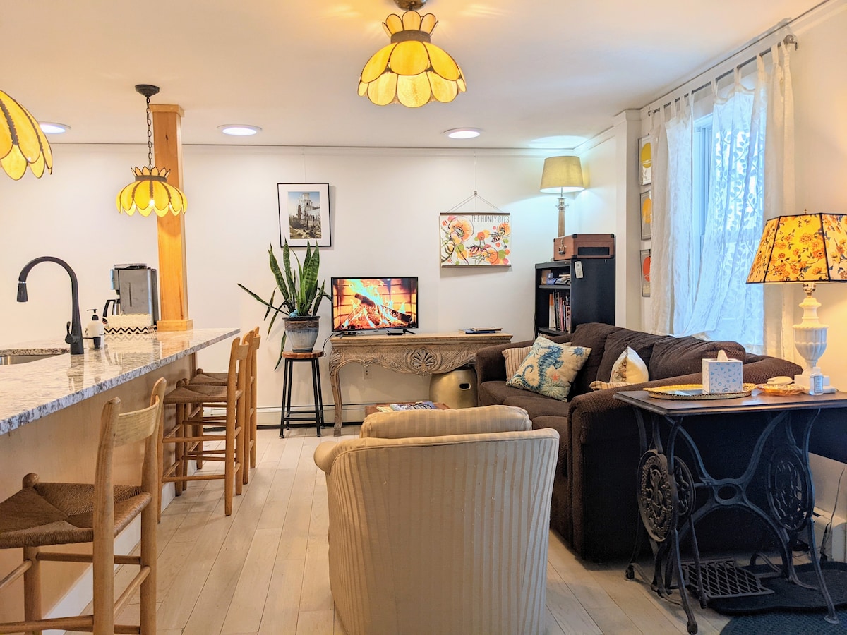 Mixja bix-xemx, li tilqgħek, it-tielet sular fuq in-naħa tal-Lvant ta' Providence. Blokka waħda minn Oak Bake Shop, Providence Bagel, Whole Foods; ħafna iktar 'il bogħod minn mil. Sodda queen komda + sufan sodda, banju privat, Apple TV. Tajjeb għall-klijenti fit-tul u għall-viżitaturi ta' tmiem il-ġimgħa. Bitħa, grill, ħasil tal-ħwejjeġ disponibbli iżda maqsuma mad-dar. Ħażna potenzjali fil-kantina għaż-żjarat fit-tul. Il-limiti huma baxxi fil-postijiet, jafu ma jkunux komdi għal iktar minn 6'.