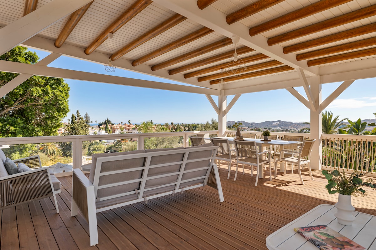 This exclusive duplex penthouse offers 200 m² of interior space and 100 m² of terraces with panoramic views of the sea, and La Concha mountain. Fully renovated and brand new furnished, it features 3 bedrooms (2 en suite) a modern kitchen, large living areas, and both indoor and outdoor dining spaces with a barbecue. Only 10 minutes walking to the beach and 15 minutes from Marbella. Pools, private parking, and close to golf courses. Ideal for enjoying the sun and tranquility of the Costa del Sol.