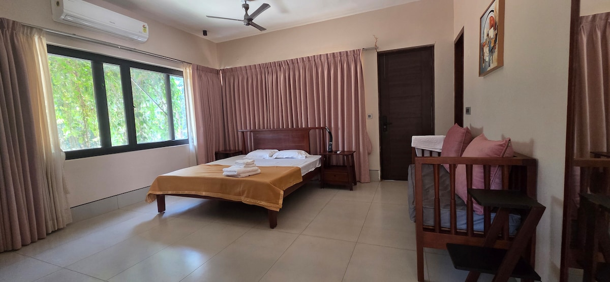 Tranquil Retreat in Courtallam: Ideali għal dawk li Jħobbu n-Natura! Merħba fid-dar mill-isbaħ tagħna li tinsab fil-fruntiera ta' Vallam, Courtallam 3 km 'il bogħod mill-waqgħat ta' Main. Ideali għall-familji jew għall-gruppi, il-post fejn toqgħod spazjuż tagħna joffri kumdità, konvenjenza u gateway għall-meravilji naturali ta' Tenkasi. Dan huwa dak li jagħmel id-dar tagħna speċjali: Kmamar tas-sodda: Aħna noffru tliet ikmamar tas-sodda komdi u mgħammra sew, kull waħda mfassla biex toffri rqad ta' lejl mistrieħ. Żona tal-Għajxien: Sala kbira perfetta għal-laqgħat tal-familja.