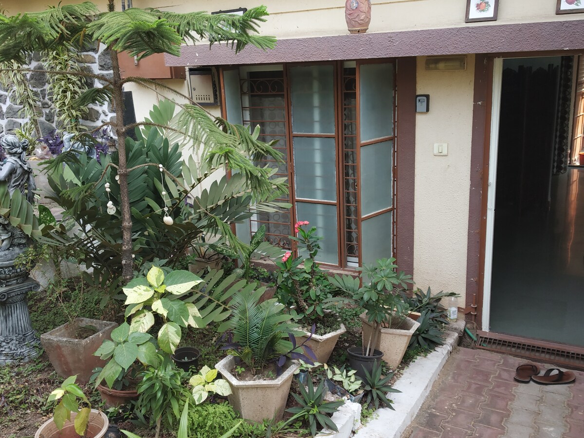 Kumdità ta' 1000 pied kwadru. 1BHK Il-post huwa kwiet u kwiet ħafna. Id-dar għandha dawn il-faċilitajiet : - Kċina kompluta b' cooker tal-gass, induzzjoni, microwave, friġġ u għodod - Magna tal-ħasil. Ċappetta fuq barra biex tixxotta l-ħwejjeġ. - Ġnien privat - 32' TV, Fire TV b' kontijiet premium għal Netflix,Prime Video, SonyLiv, Zee5 - 24 Siegħa ilma sħun solari - Inverter A/C - Internet bil-fibra Tata tal-Wifi 100 mbps Gawdi mixja madwar il-ġnien u s-soċjetà.