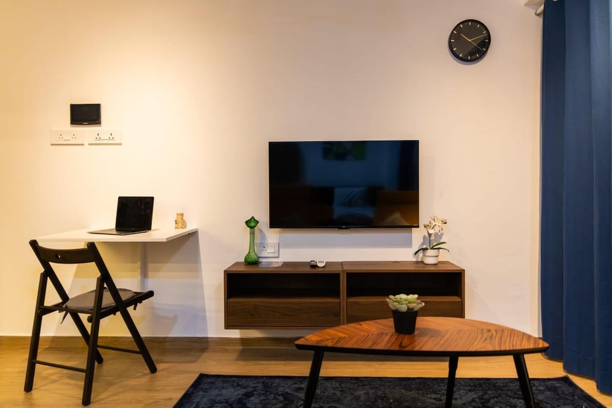 ★ Luxury 6BR Duplex | Qrib l-Ajruport ta' Pune | Solar Powered ★ Skopri l-lussu modern fid-duplex tagħna b' 6 ikmamar tas-sodda ġewwa Pune. Ideali għall-familji u għall-vjaġġaturi fuq xogħol, din id-dar tħallat il-kumdità ta' kwalità għolja mal-konvenjenza aħħarija. Irrilassa f' sitt ikmamar tas-sodda privati, kull waħda minnhom għandha sodda king-size, lożor lussużi ħafna u dawl tal-burdata li jista' jinbidel. Il-kċina gourmet mgħammra b' kollox għall-użu tiegħek u s-salott spazjuż fih TV ta' 65 pulzier biex tirrilassa.