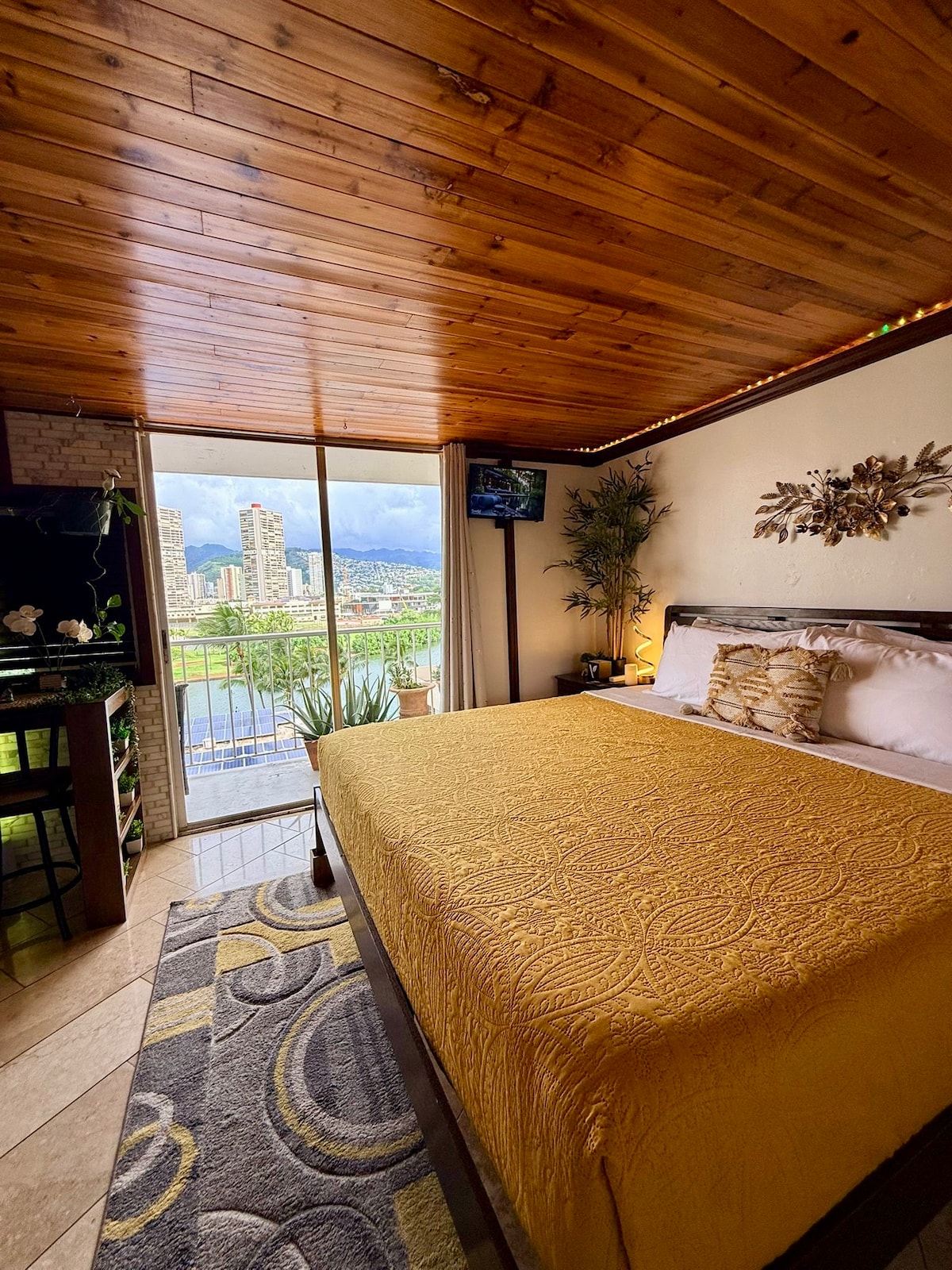 Tlugħ ta' xemx fuq is-surf, inżul ix-xemx fuq il-bajja, pranzu fil-quċċata ta' Waikiki. Gawdi l-veduti tal-Muntanji Ko'olau, Ala Wai Blvd u l-park il-ġdid fuq Aloha Ave minn lanais spazjuża. Mgħammra b' A/C, smart TV, microwave, cooker, sink u ilma ffiltrat fuq tap biex tkun tista' tibqa' maġiku! Irranġat dan l-aħħar b' art tal-ġebel u saqaf tal-pjanċa taċ-ċedru, il-post komdu tiegħek fis-sema qed jistenniek! Parkeġġ Limitat kultant disponibbli għal iktar $ 20/lejl.