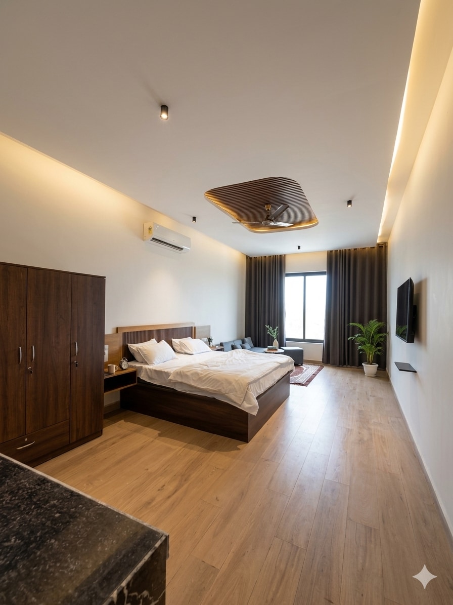 Enjoy a peaceful stay in this spacious suite room in Pushkar. The room is clean, modern, offering a comfortable and relaxing environment for couples, solo travelers, or remote workers. Guests will have full privacy with a large open room and an attached private bathroom. All Basic amenities like hot parking, AC etc.are available. The room features one comfortable double bed and a sofa-cum-bed, making it suitable for up to 4 guests. Located in a quiet area close to Pushkar’s main attractions.
