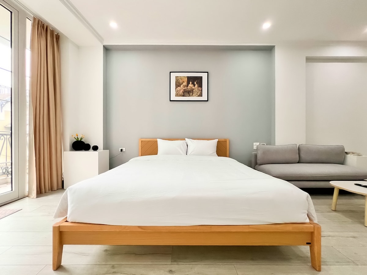 L-Appartament Kem, li jinsab f' post kwiet fil-qalba ta' Tay Ho, joffri esperjenza ta' żjara komda u privata b' disinn modern ta' studio ta' 55m2. Mill-gallarija tista' tgawdi l-veduta tal-Lukanda Sheraton u l-Intercontinental - is-simbolu lussuż taż-żona. L-ispazju huwa arjuż, mimli kumditajiet, ideali għall-koppji jew għall-vjaġġaturi li jixtiequ jiskopru Hanoi b' mod sofistikat u komplut.