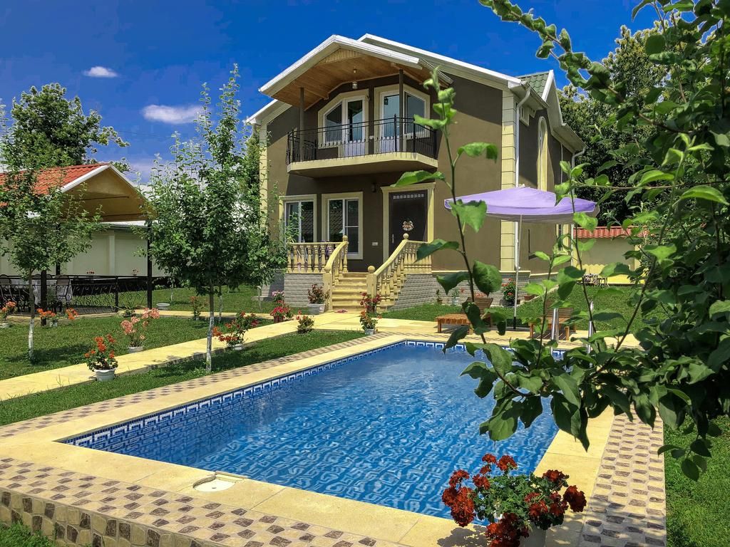 Il-villa tagħna tinsab fuq il-għoli tal-Firxa l-Kbira tal-Kawkasu u mdawra b 'foresti, xmajjar, lagi. Il-pajsaġġ huwa mill-isbaħ. Il-villa tagħna hija 200 metru 'l bogħod miċ-ċentru tal-awtostrada u tar-raħal u 15-il minuta' l bogħod miċ-ċentru tal-belt – Gabaland (park tad-divertiment), Caucasus Hotel, Riverside hotel, Tufandagh Ropeway, post għall-iskejzjar, resort ta' Shenot. Hemm tuffieħ, siġar tal-lanġas, pixxina, terrazzin, plac barbique, kamra tal-mistrieħ, post privat għall-parkeġġ fil-bitħa.