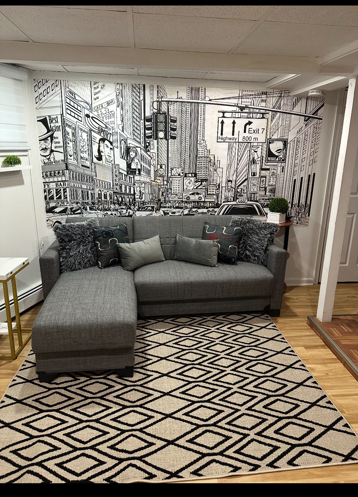 Is-Suite Serenity hija spazju miftuħ u mfassal b' mod funzjonali b' daħla PRIVATA, kċina, kamra tas-sodda, kamra tal-banju u postijiet fejn toqgħod bilqiegħda. B' disinn u għamara kontemporanji nodfa, The Serenity Suite toffri ambjent komdu, serju u sigur. Irrilassa u rrilassa, f' din is-Suite suburbani li għadha kif ġiet irranġata li tinsab 10 minuti 'l bogħod mill-UBS Arena u Belmont Park, 5 minuti' l bogħod mill-Belt u l-Parkways tal-Istat tan-Nofsinhar, 15-il minuta' l bogħod minn JFK, 10 minuti' l bogħod minn LIRR u 25 minuta 'l bogħod minn LGA.