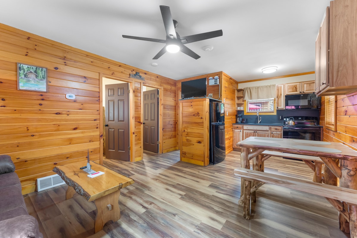 Fireplace li jaħdem bl-injam bil-wifi AC. Spazju miftuħ b 'saqaf għoli. Ħafna dawl. Sodda u mejda minn Craftsman Lokali. Rinnovazzjoni ġdida. Għamara u saqqu ġodda. Ħu gost. Fil-Pixxina fuq l-art maqsuma ma '5 kabini oħra. Mill Creek tinsab 100 pied 'il bogħod mill-kabina. Il-Lag George 20 minuta. Gore Mountain 5 minuti. Attivitajiet fuq barra minuti bogħod minna. Għandna 6 kabini b 'kollox u nistgħu nilqgħu 50 persuna b' kollox għal gruppi kbar. Tariffa ta 'darba ta' $ 75 għal kull annimal domestiku għandha titħallas fil-ħin tal-booking.