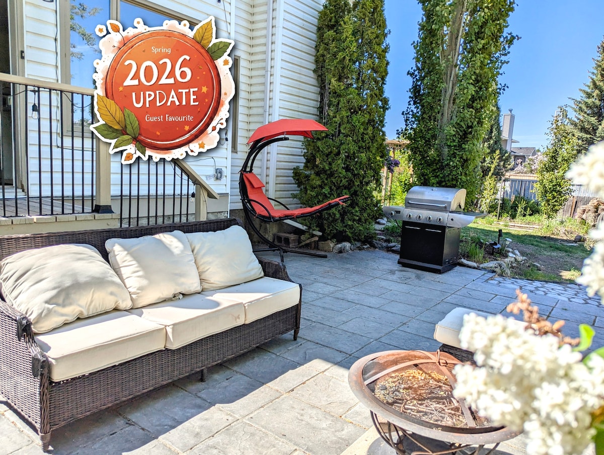 Woodland Retreat hija dar aġġornata u spazjuża bi 3 ikmamar tas-sodda! Aċċess faċli għall-Muntanji Rocky, Spruce Meadows u li tista' timxi sal-Park Provinċjali ta' Fish Creek. Tajjeb għall-gruppi ta' divertiment. Tajjeb għall-familji b' kamra tal-logħob + benniena tal-ivvjaġġar u siġġu għoli. Gawdi l-kafè/espresso magħmul id-dar tiegħek fil-kċina mgħammra b' kollox u bar tal-kafè mgħammar. Jinkludi affarijiet uniċi bħal record player + records. Woodland Retreat hija ż-żjara kwieta tiegħek biex tirrilassa u tirrilassa wara avventura fil-muntanji jew fil-belt.
