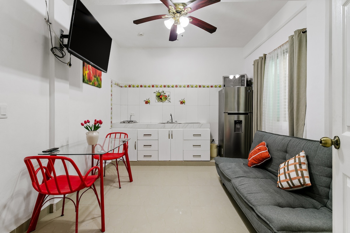Modern, adults-only apartment in a quiet neighborhood just minutes from downtown. Guests love the peaceful setting and return often for the rooftop plunge pool, BBQ area, and daily housekeeping. Cruise the coast on free bikes or explore nearby shops and cafes. ✔ Rooftop Pool ✔ Starlink WiFi ✔ Free Bikes ✔ Full Kitchen ✔ Night Security ➕ 7-Eleven only one block away Bonus: 10% off scuba diving with top-rated Scuba Life Cozumel. Ages 12+ only.