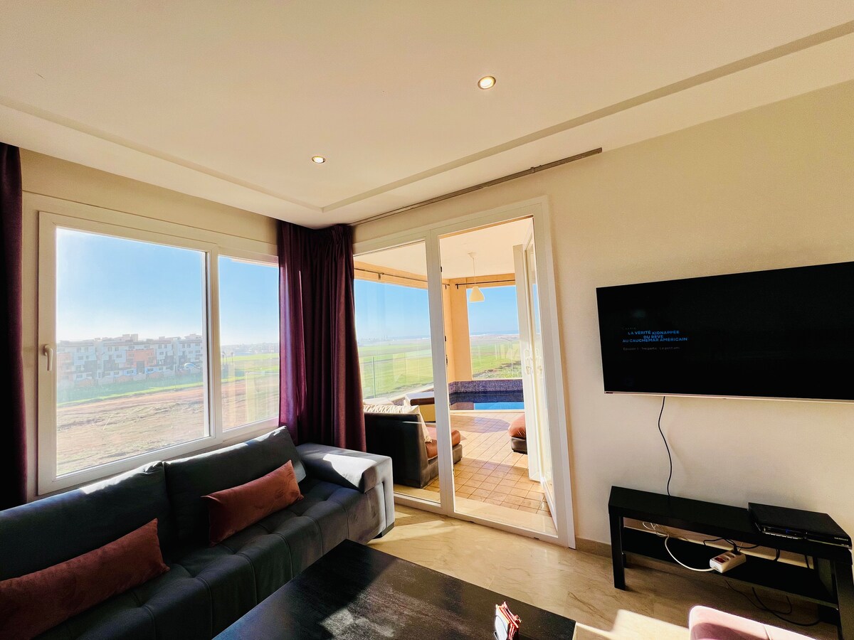 Appartament panoramiku mdawwar bid-dawl tax-xemx b'terrazzin li jagħti fuq il-baħar u pool privata żgħira. Suite ewlenija bit-TV u l-kamra tal-banju. It-tieni kamra tas-sodda b' aċċess għat-terrazzin. It-tieni kamra tal-banju. Salott komdu, Smart TV, Netflix u Wi-Fi, kċina mgħammra b’bar, arja kkundizzjonata ċentrali. Residenza mgħalqin b’xatba u mħarsa b’post għall-parkeġġ u garaxx. Pixxina komunali kbira miftuħa matul is-sena kollha. Il-Bajja ta’ Cherrat u l-Bajja ta’ Bouznika jinsabu ftit minuti ’l bogħod. Kalma assoluta. Tajjeb ħafna għall-familji u għall-koppji.