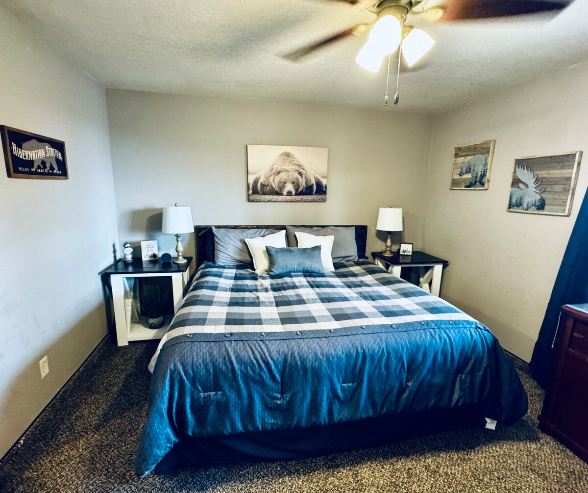 Two Large Furnished Bedrooms, new Queen Beds Pool Table and Darts Large living room with new sofa sleeper Newly remodeled bathroom 65'' UHD Smart TV, Dish DVR, Bluray Pool and Rec facilities, seasonal WIFI Highspeed Internet Outdoor patio area with seating Gas grill Pool table and darts Full size fridge/freezer Convection oven Induction cooktop Microwave Keurig coffee and breakfast snacks Washer and dryer Close to Rapid City shopping and dining Nature and wild life Amazing stars out at night!