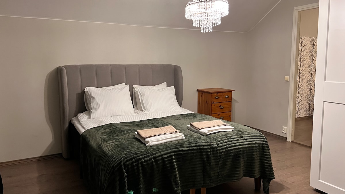 Appartament ġdid mdawwal b' żewġt ikmamar b' togħma tajba, eżatt ħdejn iċ-ċentru kummerċjali ta' Puuvilla. Il-post fejn jinsab l-appartament huwa ċentrali ħafna, iżda xorta mingħajr storbju tat-traffiku. Iċ-ċentru ta' madwar 1km, sa Kirjurinluoto 900m. L-appartament għandu l-appliances kollha li teħtieġ, kif ukoll magna tal-ħasil li tinxef. Sodda doppja u sufan sodda doppja. Jekk ikun hemm bżonn, hemm ukoll sodda żejda għal waħda. Appartament b' TV, radju u Wifi/fibra ottika ta' 55 pulzier. Terrazzin komdu b' għamara ta' barra u post għall-parkeġġ fil-bitħa.