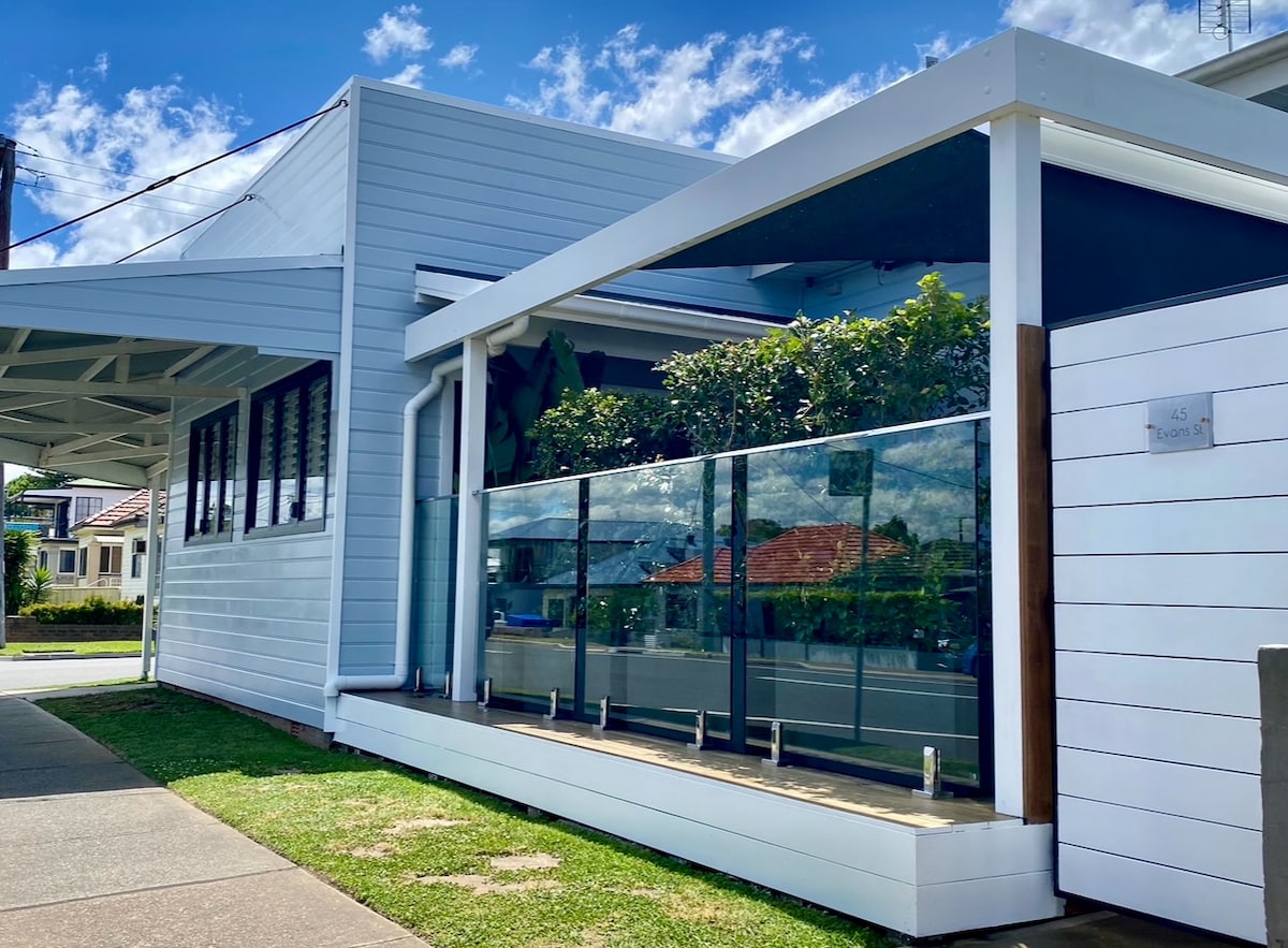 Studio privat bl-arja kkundizzjonata waħdu b 'veduta ta' pixxina/ġnien fuq wara ta 'dar residenzjali. Koppji ta 'suite. Użu sħiħ tal-pixxina/żona fuq barra. Dekor modern. TV mmuntat fuq il-ħajt bi skrin kbir b 'aċċess liberu għall-arja u bil-vidjow. Smart TV. Kċina żgħira bi friġġ tal-bar, microwave, kitla u pożati essenzjali u crockery, te u kafè, Kamra tal-banju/ħasil tal-ħwejjeġ, doċċa u toilet. Sodda doppja 'Queen'. 40 metru kwadru. Post mill-aqwa, madwar 15-il minuta mixi lejn Bar Beach, CBD, Hamilton,The Junction u Darby street cafes.