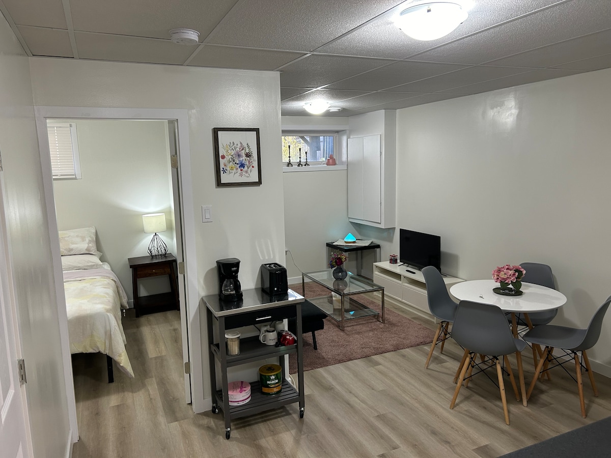 Nafu li se jkollok żjara mill-aqwa f 'din is-suite privata, fin-naħa t' isfel tad-dar tagħna. Quinn Drive huwa post perfett għal Wascana Park, ċentru, università, ħwienet tal-kafè u xiri! Hija mixja qasira lejn il-Lag ta 'Wascana, iċ-Ċentru tax-Xjenza u l-IMAX, il-playgrounds, il-marina tal-lag u l-mogħdija tar-roti. Is-suite għandha twieqi kbar u hija mdawla. Aħna amikevoli għall-klieb, allerġiċi għall-qtates. *Jekk jogħġbok żomm f 'moħħok li se jkun hemm spiża żejda għall-iċċarġjar tal-vetturi elettriċi. Liċenzja tal-Akkomodazzjoni għal Żmien Qasir, Belt ta 'Regina #STA23-00232