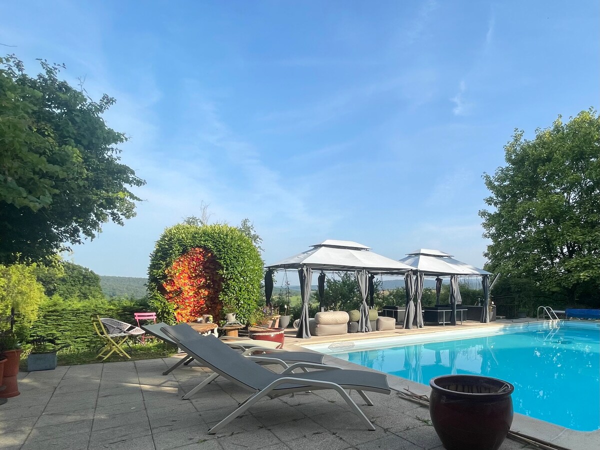 Le « PoolHouse et Spa » à 12 minutes de la gare de Saverne vous ouvrira la voie jusqu’aux plus beaux marchés de Noël Alsaciens. Vous êtes à 45 minutes de Strasbourg, 1:15 de Colmar, au départ de la route des vins. Niché au cœur de la résidence ceinturée et arborée, c’est un environnement unique et tranquille. Profitez du sauna, de la cuisine ouverte sur l’espace jour/nuit (lit Gigogne 160/200) Jacuzzi avec une vue sur les montagnes, les prairies et les vergers