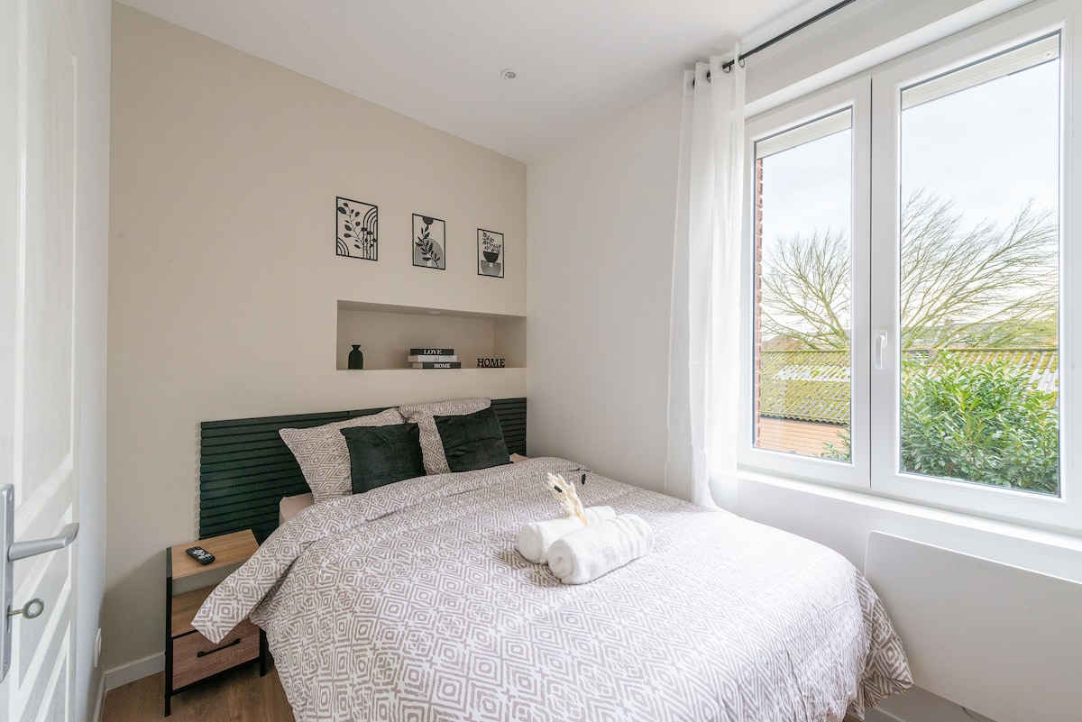 2 chambres. 1 lit King size 2 doubles lits ou lit King size lit bébé sur demande 1 canapé convertible dans le salon cuisine équipée: four, plaque de cuisson, machine à café Senséo, micro onde, bouilloire, grille pain, appareil à fondue. appareil à raclette sur demande. coin télé. machine à laver à disposition. salle de douche avec chauffe serviette. terrasse et jardin. carport sécurisé 🖍🖌⚽️jouets et activités pour les enfants. 📚lecture pour toute la famille. 🌳🍂🍃balades en nature.