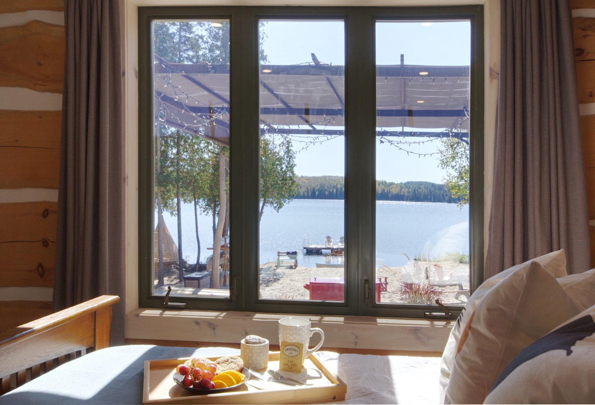 Ġib il-familja kollha f 'dil-cottage privata panoramika faċċata tal-bajja (2022) li għadha kif inbniet. Veduta eċċellenti ta' 180° SW sunset lake, terrazzin spazjuż, Iktar minn 200' ta' bajja bir-ramel privata, baċir, firepit. Gawdi żewġ żoni ta' divertiment w/ TV u Air Hockey. kċina moderna u personalizzata kbira tal-kwarz + it-tieni friġġ. Veduti tax-xemx minn bdrm w/ ensuite ewlieni, armarju biex tidħol fil-post u bieb għal fuq il-gverta. Internet veloċi Starlink, uffiċċju, 9 sodod (sodod solidi magħmula bl-idejn). 2 Kayaks, 1 Canoe u ġkieket tas-salvataġġ. Affarijiet bażiċi u bjankerija tas-sodda u Ġbir tal-Iskart inklużi.