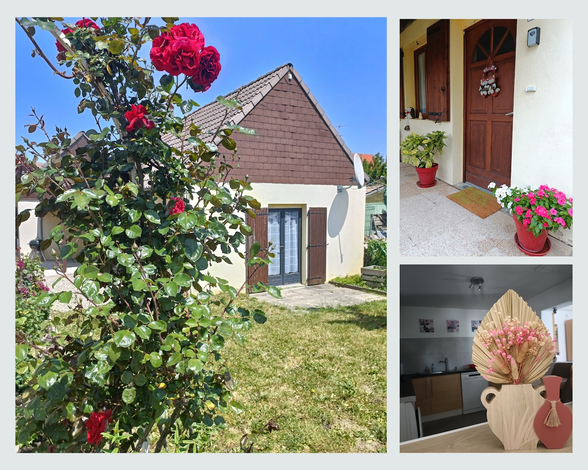 Booking: minimu ta '2 iljieli. Dar Alsatian kompletament rinnovata ta '80 m2 għal 5 persuni. Jinsab fiċ-ċentru ta 'Alsace f' raħal żgħir tipiku: Fiċ-ċentru ta' Sélestat/ Colmar/ Strasburgu/EuropaPark / Route des Vins Fuq is-sular t' isfel hemm kċina u salott mgħammra b' kollox. Sufan sodda b' saqqu veru Sular ta 'fuq, kamra tas-sodda STIL TA' LOFT b' sodda doppja waħda 160 x 200 u sodda waħda (90 cm). Terrazzin privat +SPA+SAWNA huma disponibbli wkoll. Minimu ta' 2 iljieli!