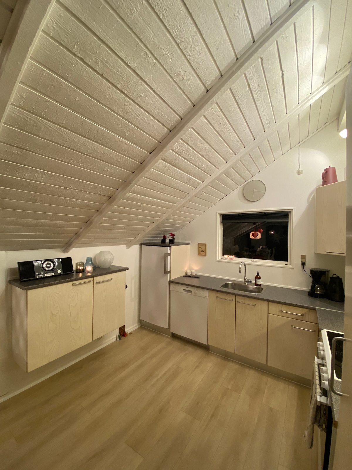 Dar tas-sajf mill-isbaħ b 'veduti sbieħ ta' fjord. Terrazzin mgħotti, salott bi kċina ntegrata, żewġ kmamar tas-sodda (waħda b 'veduta) Kamra tal-banju żgħira. Guest house b 'sodda 1.40m. 250.00./lejl li tista' tinkera biss għaż-żjara kollha. Jacuzzi fuq barra, ikri 400.00Kr kuljum, għaż-żjara kollha biss. Sawna u banju tal-fwar, magna li taħdem bil-muniti li titħallas 10.-Kr/10 minuti. Il-klieb aċċettati: 100kr/ kelb u jum -Roti, WiFi, grill tal-gass, bjankerija tas-sodda, għal użu bla ħlas