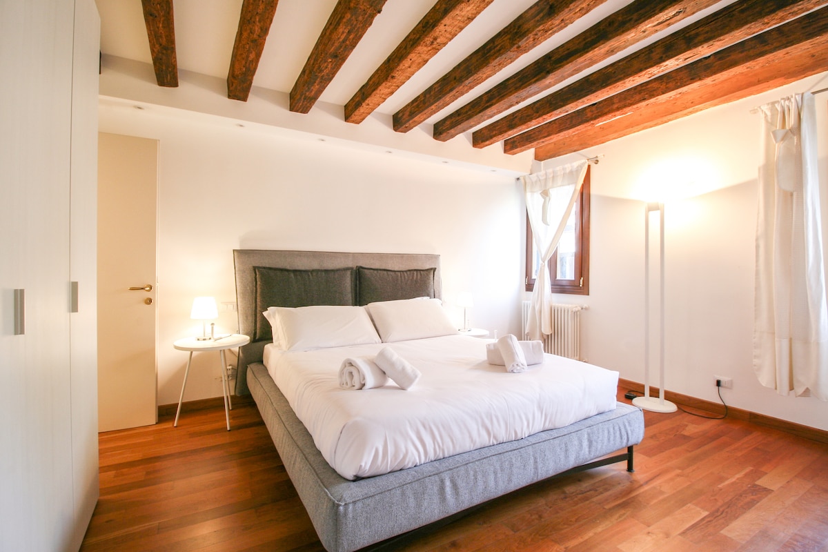 Il-biċċa l-kbira tal-post ċentrali li Venezja għandha x' toffri, turġien sal-Pjazza ta' San Marco u l-attrazzjonijiet ewlenin kollha. Dan l-appartament mill-isbaħ għandu veduta sabiħa tal-kanal mill-gallarija tiegħu. Dan l-appartament b' kamra tas-sodda waħda jsaħħaħ l-art tal-injam iebes, l-arja kkundizzjonata, l-internet veloċi, il-magna tal-ħasil u d-dryer, il-kċina mgħammra b' kollox għal tisjir limitat jew estensiv. Ideali għal koppja waħda fuq qamar tal-għasel jew koppja b' tifel jew tifla waħda jew it-tielet klijent.