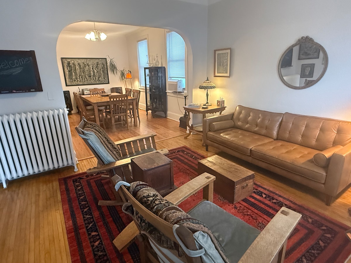 Il-livell ta 'fuq ta' duplex f' post ewlieni fin-Nofsinhar ta' Minneapolis. Dan l-ispazju nadif u komdu jinkludi sodda king size wara l-bibien Franċiżi. Imwaqqaf kompletament bil-kċina tiegħek stess, kafè inkaljat lokalment, u ovvjament Netflix! Self checkin konvenjenti. Distanza qasira lejn l-ajruport, Mall of America, US Bank Stadium, Minnehaha Falls, birreriji u distanza bil-mixi sa lightrail, ħwienet tal-kafè, ristoranti u teatru tal-films bi skrin wieħed tas-snin ħamsin.