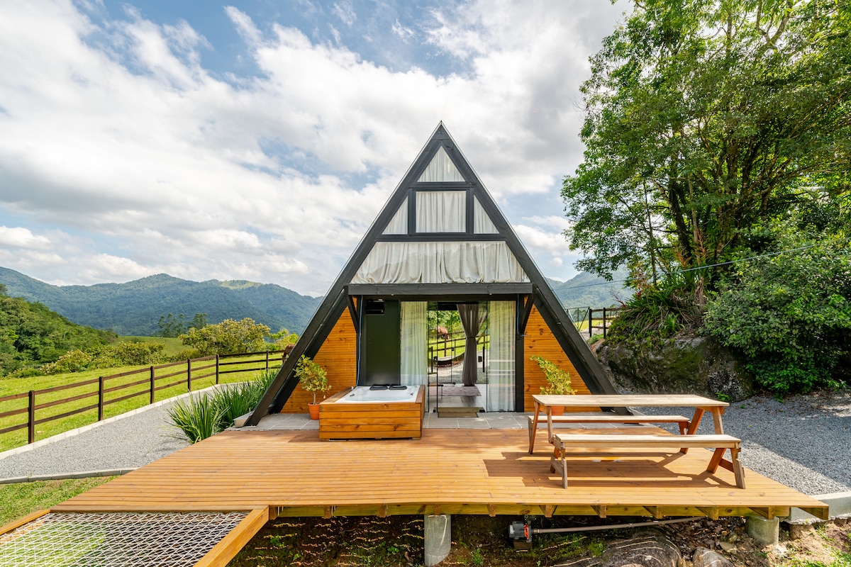 Kabina komda ħafna, fiċ-ċentru ta' Doutor Pedrinho, b' aċċess faċli għas-sbuħiji naturali kollha tal-muniċipalità. Il-post privileġġat tiegħu, fuq l-għolja, joffri l-iktar veduta sabiħa tal-belt. Ġie ddisinjat b' użu abbundanti ta' ħġieġ biex jippromwovi l-immersjoni fin-natura madwaru. Għandha fireplace u ofurô b' idromassaġġ biex il-klijenti jirrilassaw kompletament. Aħna nipprovdu l-affarijiet essenzjali kollha għal żjara komda. Ideali biex tistrieħ u tgawdi l-pajsaġġ imżejjen taż-żona!