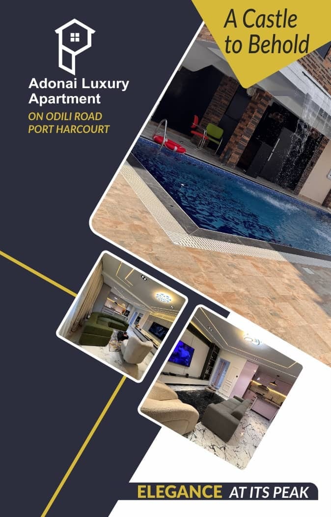 Forget your worries in this spacious and serene space. feel the comfort of: 1,2,3 and 4 beds featuring: •luxurious king and queen size beds •large tv screens (minimum 55") in all rooms •Swimming pool •Snooker and table tennis gives you a mind blowing experience. •located away from major roads providing a peaceful and quiet environment The stylish and unique interiors, gives you a mind blowing experience. why not treat yourself to a unforgettable mini holiday with Adonai Luxury Apartment.