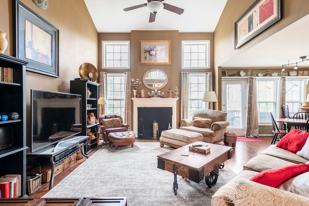 Cottage komda, East End ftit minuti biss minn Top Golf, ċentri kummerċjali, ristoranti, divertiment u kumditajiet oħra. Aċċess faċli għall-awtostrada. Id-dar hija maħtura tajjeb b 'countertops tal-granit, tagħmir li ma jissaddadx, art iebsa u aktar. Tista 'tinstema' mixja staġonali mid-dar li tagħti l-impressjoni ta' kabina fil-boskijiet bil-privatezza u s-seklużjoni, bil-kumdità li tgħix fil-belt fuq ponot subgħajk. Hemm ukoll park sabiħ ftit passi 'l bogħod mid-dar.