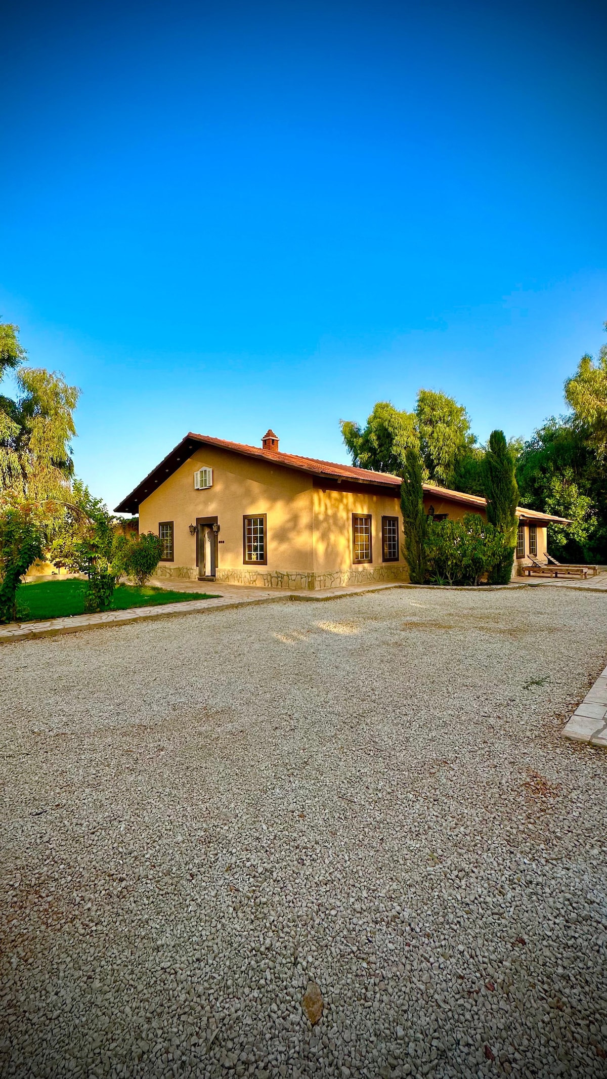 مزرعة ريفية خاصة توفر أجواء هادئة وخصوصية كاملة، مناسبة للعائلات ومحبي الاسترخاء. تحتوي على بيت أنيق بتصميم خشبي دافئ، صالة جلوس مريحة، مطبخ مجهز بالكامل، وغرف نوم مريحة. المساحات الخارجية تضم مسبحًا خاصًا، جلسات خارجية، منطقة شواء وفرن شعبي وسط طبيعة خضراء. المكان مثالي لقضاء عطلة نهاية أسبوع أو تجمع عائلي هادئ بعيدًا عن ضجيج المدينة.
