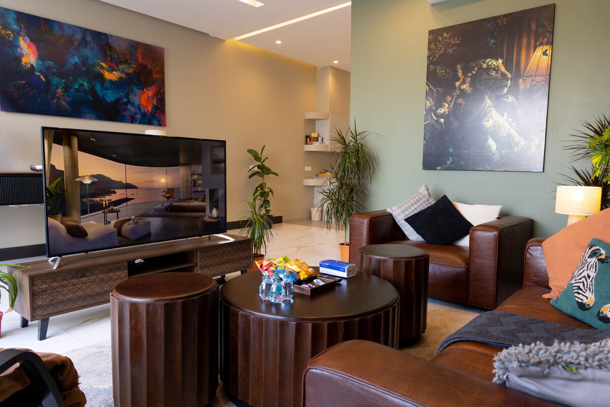 Merħba f' ħarba kuraġġuża u kwieta fejn jiltaqgħu l-arkitettura brutali, id-disinn minimalist u l-pajsaġġ tad-deżert Sawdija mill-isbaħ. Din il-guesthouse immaġinata mill-ġdid toffri taħlita bla xkiel ta' eleganza industrijali mhux ipproċessata b' sempliċità serja u ispirata min-natura. Kull spazju ġie mfassal bi ħsieb biex joffri post fejn toqgħod kalmanti, li jenfasizza s-sbuħija ta' linji nodfa, spazji miftuħa u materjali naturali. Kull dettall ġie mfassal bir-reqqa biex joffri kemm il-kumdità kif ukoll l-armonija viżiva.