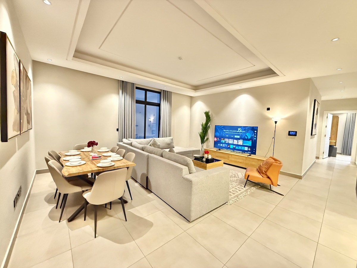 Skopri lussu mhux imqabbel f' FOKA 25 ġewwa Al Malqa. Dan l-appartament ta' 70m² 1BR jaħdem b' disinn eleganti, salott lest għal Netflix, sodda king, kċina mgħammra b' kollox, oġġetti tat-tisjir mill-aqwa u għodod tal-kafè speċjalizzati. Gawdi l-aċċess għall-gym, il-ġonna, iż-żona tat-tfal u l-parkeġġ privat. 8 minuti biss sa Boulevard, 15-il minuta sa ajruport u 20 minuta saċ-ċentru tal-belt. Il-kwiet, l-istil u l-post-il-ħarba perfetta tiegħek ġewwa Riyadh qed tistenniek.