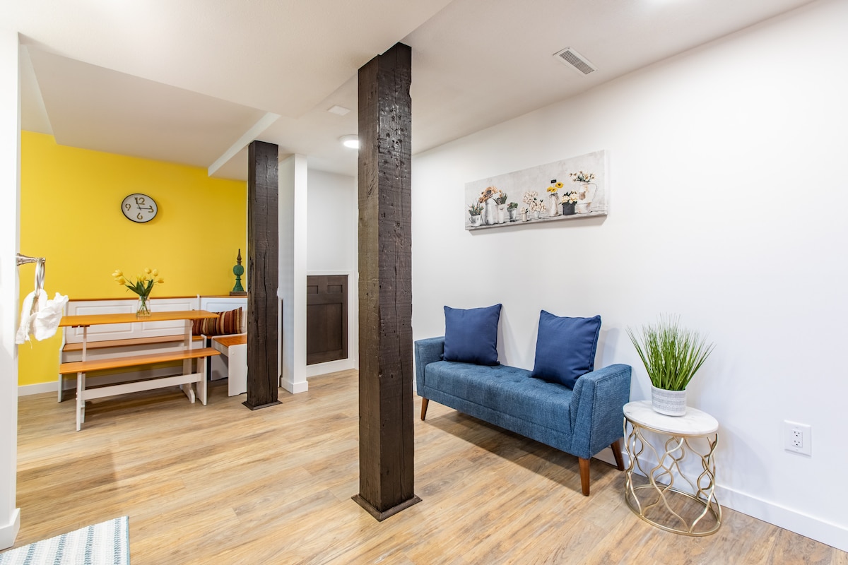 Post fejn toqgħod fuq livell wieħed/mingħajr taraġ. 2 ikmamar tas-sodda bi 3 sodod Naħa waħda ta' dar duplex: 1,200 pied kwadru w/id-daħla privata tiegħek stess, parkeġġ, ħasil tal-ħwejjeġ, kċina. 2.5 mili sa Mayo, Target, Hyvee, stazzjonijiet tal-petrol... Dar kompletament mgħammra. Smart TV & Fridge w/Internet Superfast u NetFlix inklużi. Tastiera faċli biex tiċċekkja lilek innifsek. Ftit blokki sal-waqfa tal-karozzi tal-linja. Interjuri moderni/spazjużi. Kċina mgħammra b 'kollox w/ dishwasher, borom, twaġen u magna tal-ħasil/dryer mingħajr ebda spiża addizzjonali. Fireplace u gverta privata. 3 spazji għall-parkeġġ
