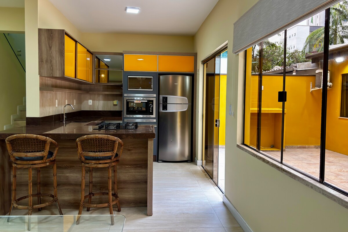 Cobertura de 3 suites, sala acoplada a uma ampla cozinha e terraço, perfeito para compartilhar momentos com amigos e familiares. Um local aconchegante e moderno, destinados a pessoas que buscam momentos de calmaria e lazer perto do mar. Localizado a poucos minutos das principais praias de Balneario Camboriú. Possui climatização em todos os cômodos e comoda até 9 hóspedes confortavelmente (3 camas queen, 2 colchões de solteiro e 1 sofá). Fica no 3 andar e o condomínio não possui elevador.