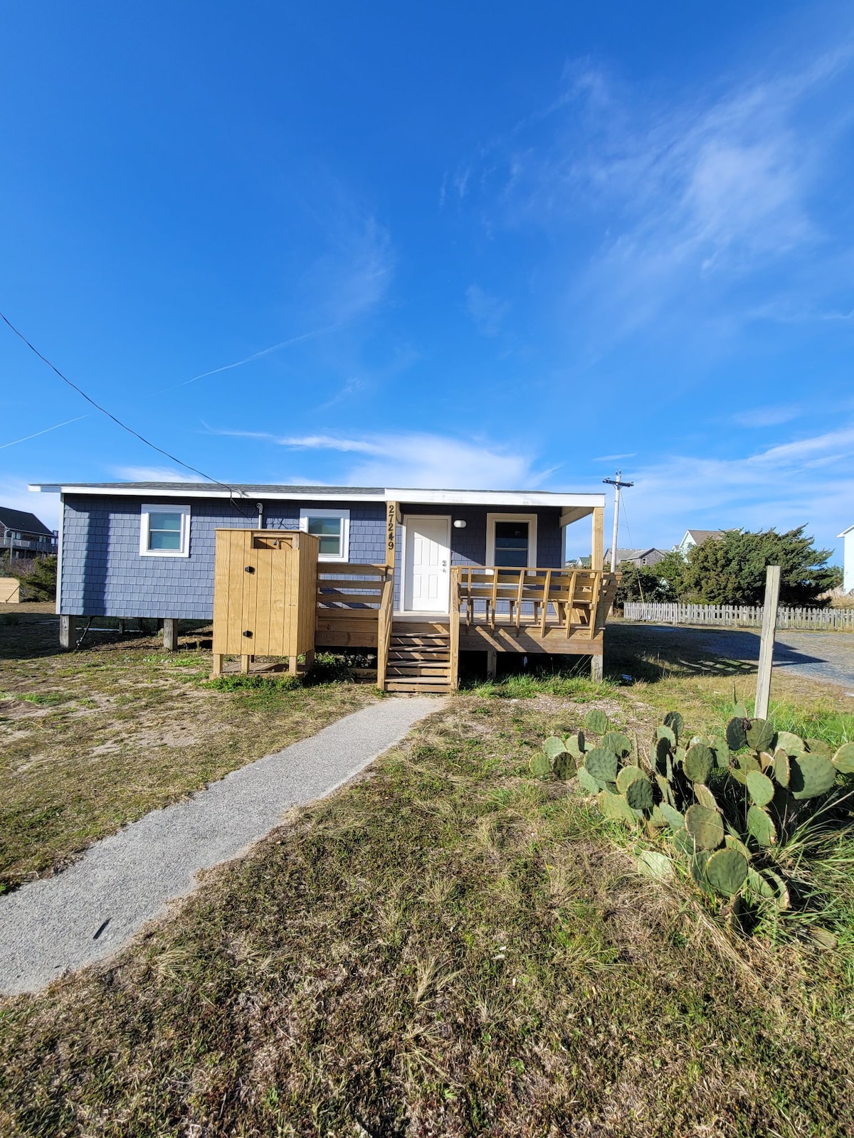Checkin f 'nofsinhar u rrilassa fuq il-bajja! Mini Dune Dancer hija suite privata għall-klijenti li hija mehmuża mad-dar tal-istil Classic Beach Box tagħna. Aħna biss ftit djar lura mill-Oċean Atlantiku, 5 minuti mixi 'l bogħod mill-bajja! Ippostata fuq triq kwieta 'l bogħod bil-mixi sa ristoranti lokali u ħanut tal-kafè. Imxi lejn l-Oċean Atlantiku għal tlugħ ix-xemx u l-Pamlico Sound għax-xemx! Gawdi stilla li tħares fuq il-gverta privata tiegħek!