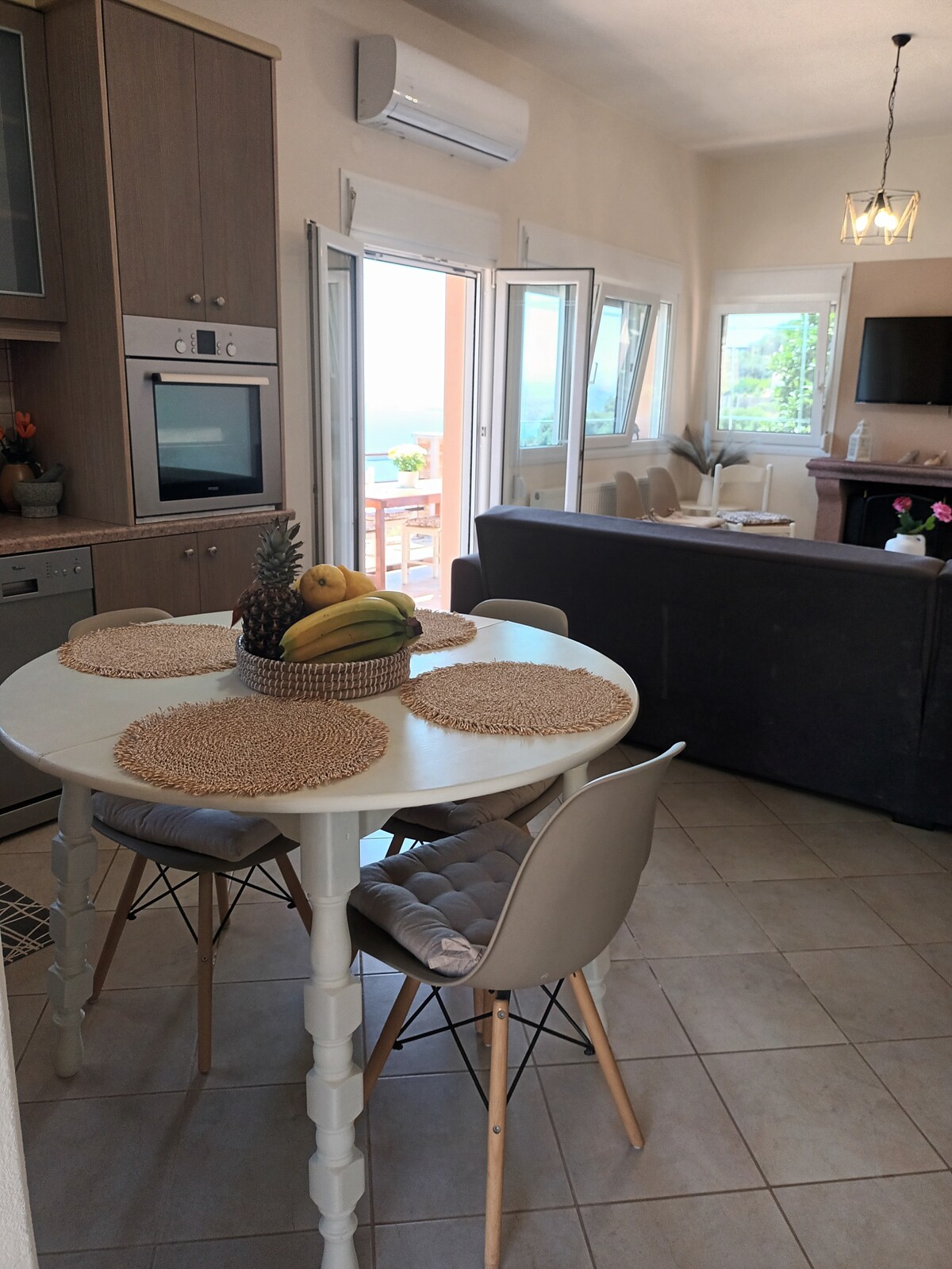 Enjoy your stay in a stylish home in Rodia, a peaceful village just minutes from Heraklion. This spacious, fully furnished house offers modern comforts and a relaxing atmosphere, ideal for couples, families, or small groups. Step onto the large private veranda and enjoy stunning views, perfect for morning coffee or evening relaxation. Private parking is available, and the location combines tranquility with easy access to the city and nearby beaches.