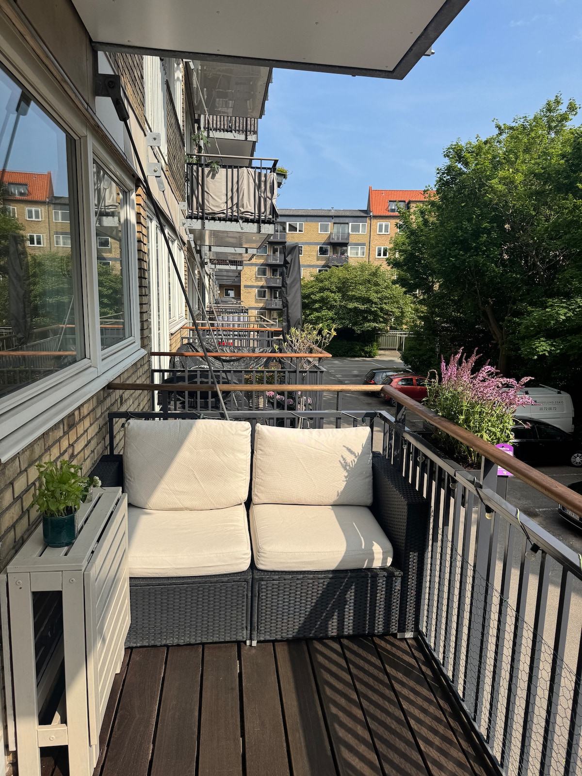 L-appartament jinsab ġewwa Kopenħagen f' nofs id-distrett vibranti tax-xiri. Qed tħares lejn il-bitħa, iżda b' tieqa miftuħa xorta tista' tisma' l-ħajja rikka tal-belt fl-isfond Il-viċinat huwa mimli kafetteriji, bars u opportunitajiet ta' xiri. It-triq famuża "Strøget" hija twila 'l bogħod mill-appartament u tgħaddi minn nofs il-belt kollha. Huwa perfett għal koppja. Għandha sodda 200 x 180 fil-kamra tas-sodda u sufan tal-irqad ġdid.