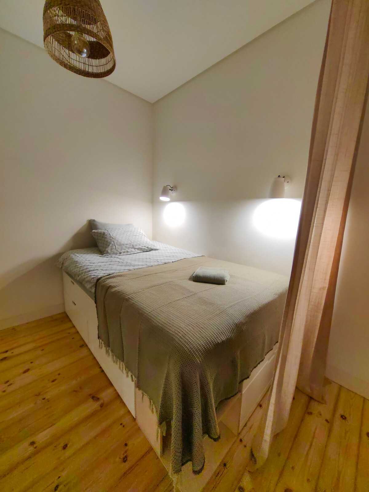 A small two-story house where you can enjoy your vacation. On the second floor there is a sleeping area with a Queen size bed and on the first floor - a living area with fireplace, sofa bed, a well-equipped kitchen and a bathroom with a bath.