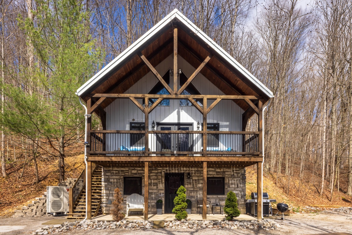 Kabina lussuża b' ħames ikmamar tas-sodda li tinsab fl-għoljiet ta' Chillicothe fejn qed jistennew veduti panoramiċi! Higby hija l-aħjar ħarba għal dawk li qed ifittxu l-kwiet, il-kumditajiet moderni u n-naħa ta' ġewwa mfassla b' togħma tajba fejn it-twieqi mill-art sas-saqaf juru l-pajsaġġ piktoresk. Kemm jekk qed tirrilassa ħdejn il-fireplace, qed tieħu gost b' kikkra kafè fuq il-gallarija spazjuża, qed tidħol fil-hot tub, kull mument li tqatta' hawn se jimtela b' moħħok mistrieħ u rilassament. Ibbukkja dal-post fejn toqgħod mill-isbaħ!