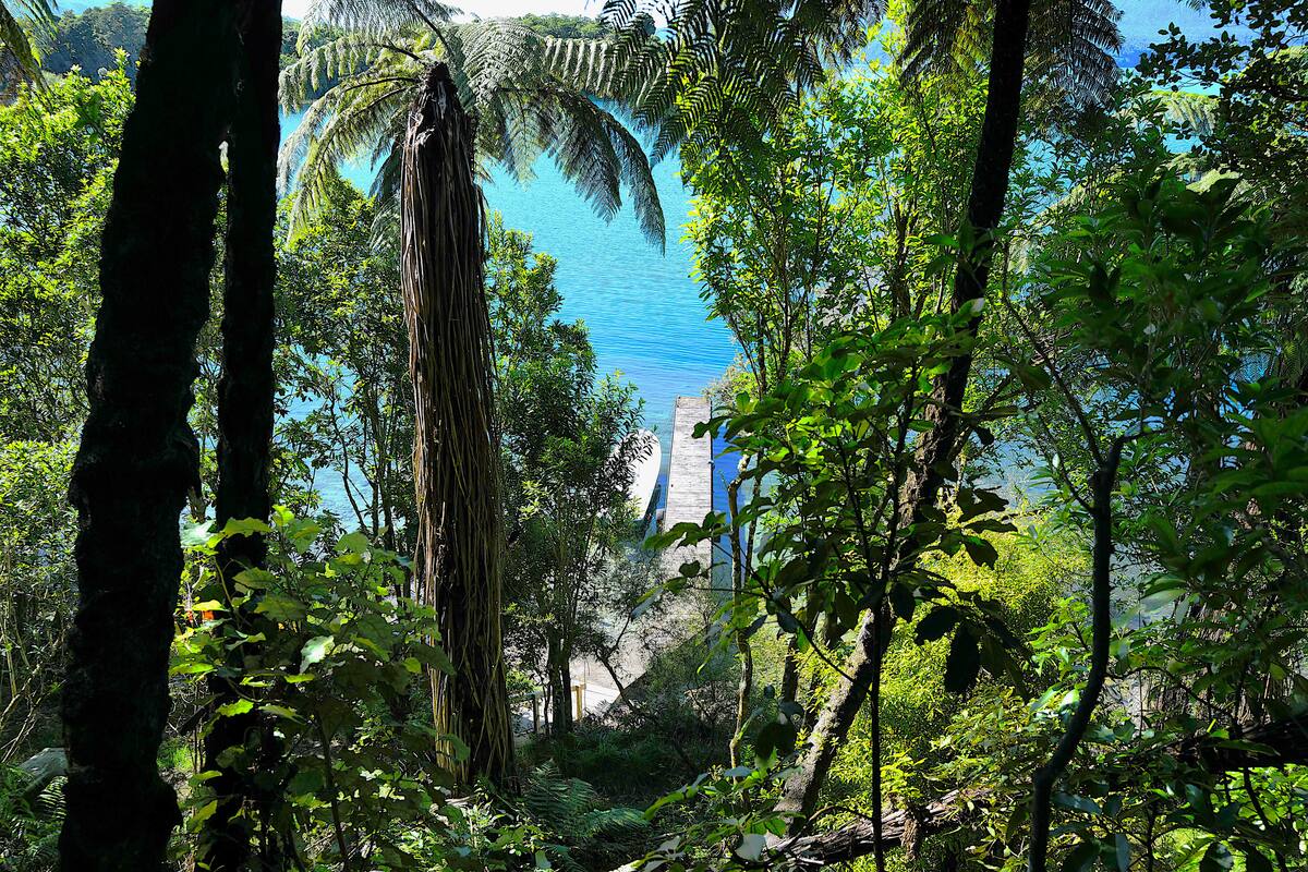 Lake Tarawera, spa, lawn to lake jetty & boatshed