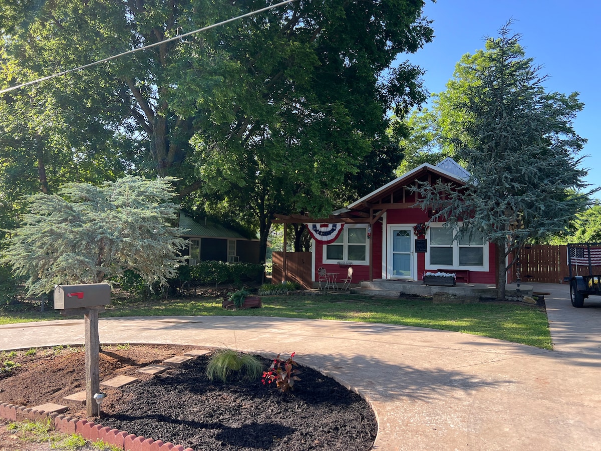 Darling Lil’ Red Bunkhouse! Two bedroom, one bath with loft will easily sleep 7! Located in town but feels like the country! Quiet street located close to Redbud Park! Perfect for Marlow Outlaw Alumni, celebrations in the park, golf tournaments, Fort Sill graduation, girls weekend getaway, or birthday party sleepover! You can see the Fourth of July firework display from the backyard!
