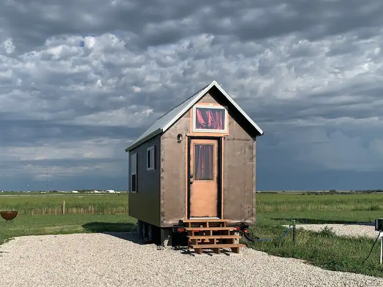 Esperjenza din id-Dar Luxury Tiny Steampunk b' post rustiku fuq barra; tiżjin tar-ram steampunk ġewwa. Daħla mingħajr ċavetta u qrib Hays, KS. Tinkludi sodda king ġewwa tieqa kbira bl-istampi li tinkwadra art agrikola ta' Kansas, u sodda sħiħa fil-loft, proġekter tal-lejżer intelliġenti 3d, skrin motorizzat, wifi, dwal tal-kurrent alternat u tal-vit. Il-kċina żgħira tinkludi friġġ żgħir, microwave, induction cook top; platti bażiċi u prodotti tat-tisjir ipprovduti. Il-banju sħiħ huwa mgħammar b' xugamani, shampoo, conditioner u body wash